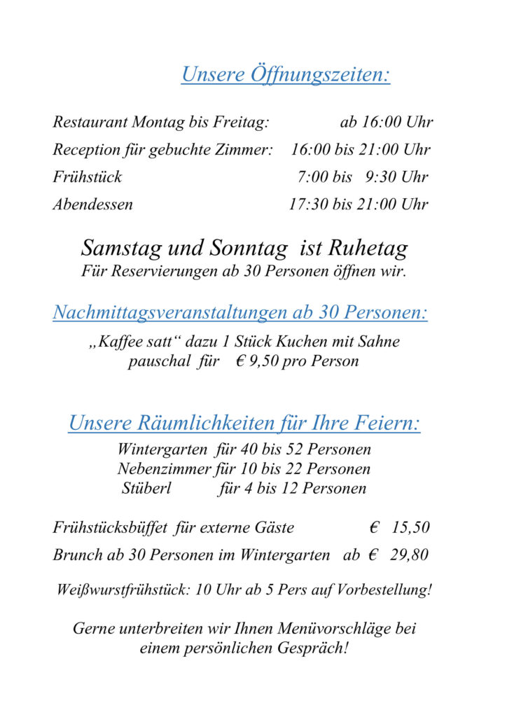 Gerne sind wir für Sie und Ihre Gäste da!